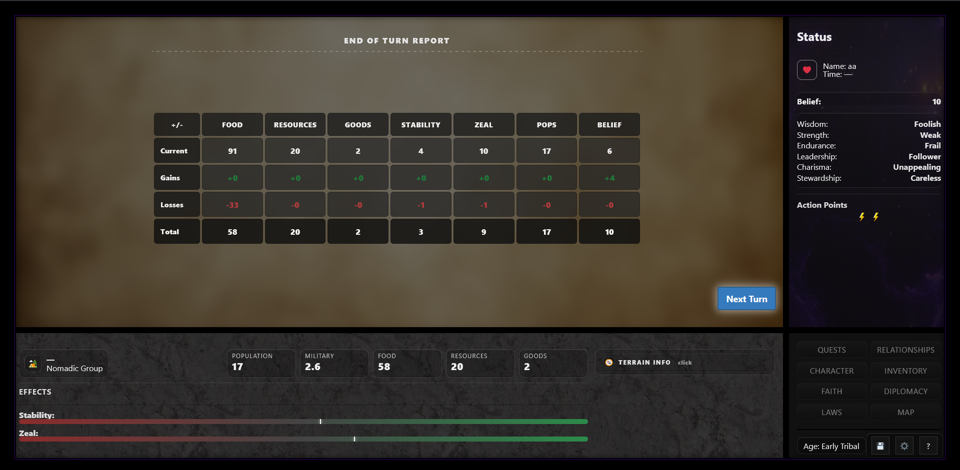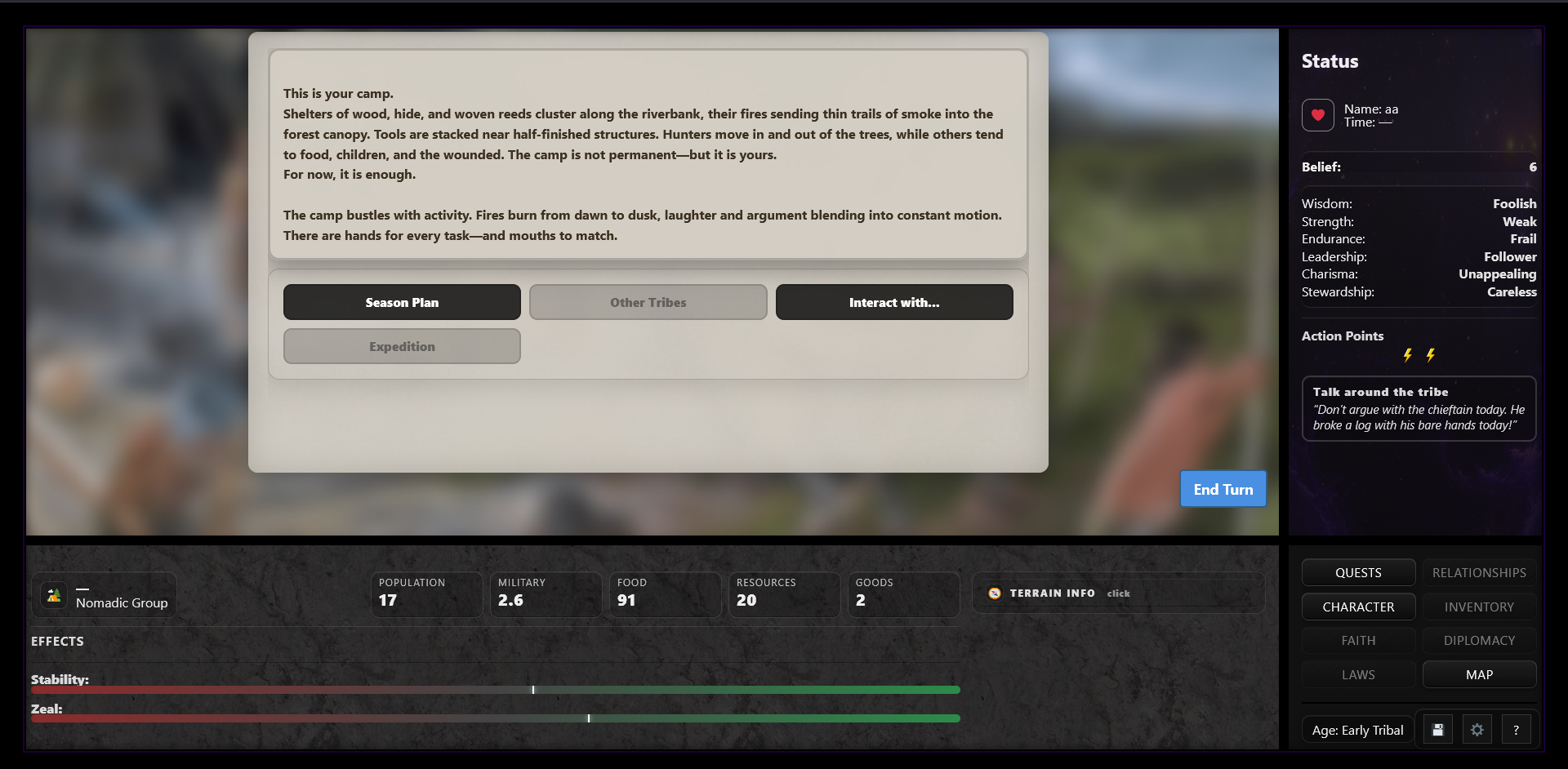 - Tribe survival + leadership, where your choices shape stability, zeal, and the long arc of your people.