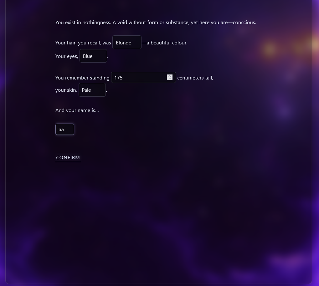 You play as something that shouldn’t exist: a conscious mind waking in a void, then falling into a primitive world fully formed — an adult body with no lived life. A newborn mind. Ancient instincts. And a tribe of mortals who will age… while you don’t.